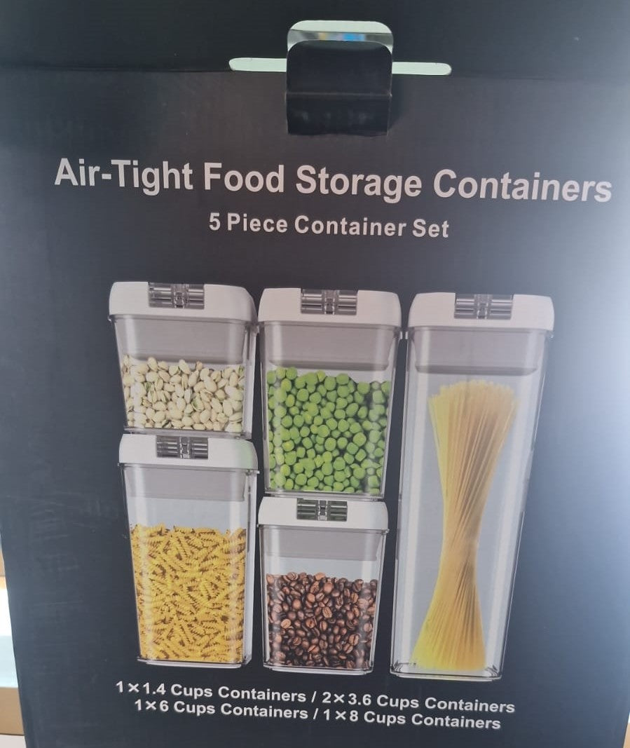 5 recipientes herméticos con tapas de alto sellado, ideales para conservar cereales, pasta, arroz, azúcar, frutos secos, snacks y mucho más¡¡